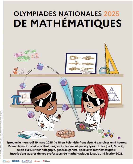 Le 10 mars 2025, débutera la Semaine des Mathématiques 2025. Le thème retenu pour cette douzième édition est "MATHS HORS LES MURS".